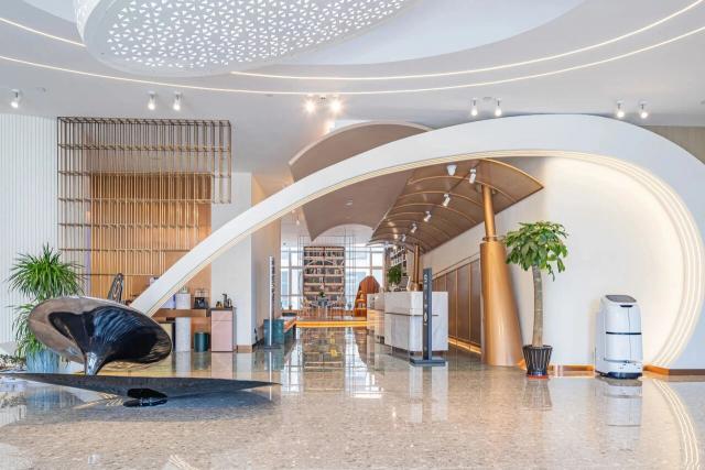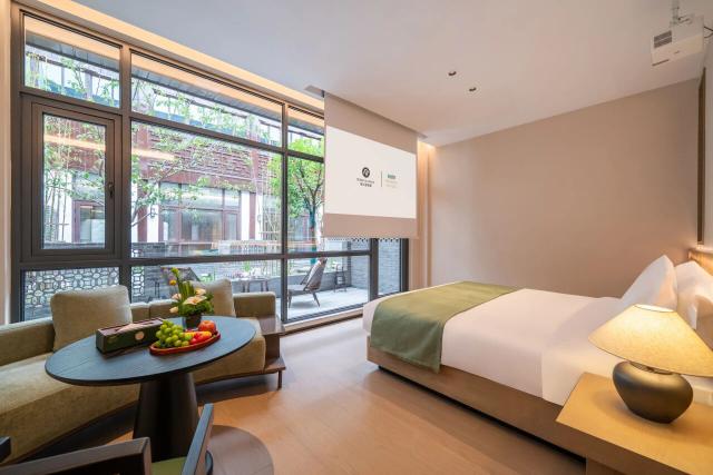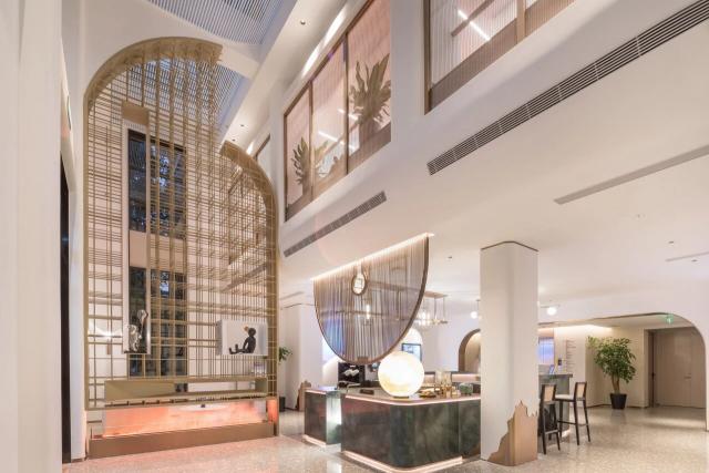 在苏州山塘街漫亭酒店,你看不到大堂里的固定电脑桌,取而代之的是复刻苏州园林的小亭台,客人能坐在竹编灯下喝茶、看窗外的小桥流水;烟台八角湾会展中心漫亭酒店的房卡上,印着当地网红景点"孤独的鲸",不少客人专门收集不同门店的房卡,说"像带了个小纪念品回家"。