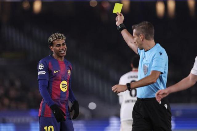18岁亚马尔剪刀脚染黄致欧冠停赛 被换下时黑脸抱怨引热议