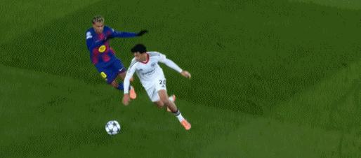 然而仅仅3分钟后,亚马尔似乎有些兴奋过度,在一次边路对抗中,他对法兰克福的球员直接使出了剪刀脚动作,这次犯规让他领到黄牌,并且由于累计黄牌,他将缺席下一轮欧冠比赛。
