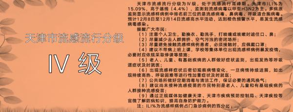今冬流感疫情形势严峻,全国已有17个省份处于流感高流行水平。12月8日,天津市疾病预防控制局微信公众号发布的流感分级预警周报显示,天津市流感流行分级为Ⅳ级,正处于流行高峰期。