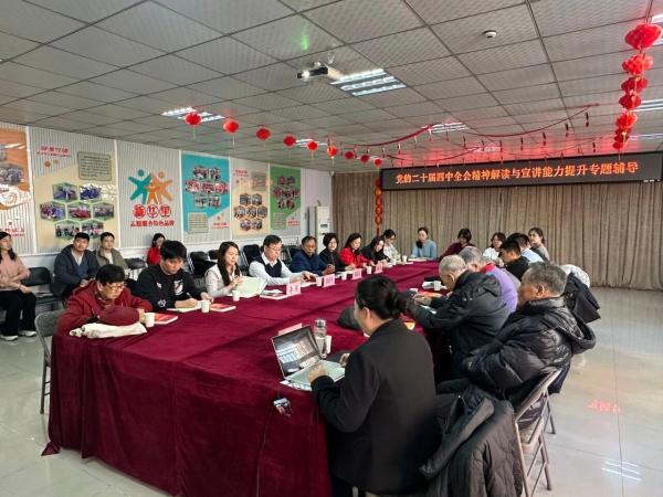 培训特别邀请区委党校赵克肖教师授课。赵老师紧扣全会精神的核心内容,结合基层宣讲的实际场景,用通俗易懂的语言讲解了宣讲内容提炼、逻辑架构设计及语言转化技巧等实用方法。针对“如何将理论政策转化为群众听得懂的家常话”“怎样兼顾宣讲的深度与温度”等问题,赵老师通过案例分析与实操指导,为学员提供了清晰的思路与具体方案。现场学习氛围浓厚,学员们认真聆听、详细记录,不时以掌声回应精彩讲解。