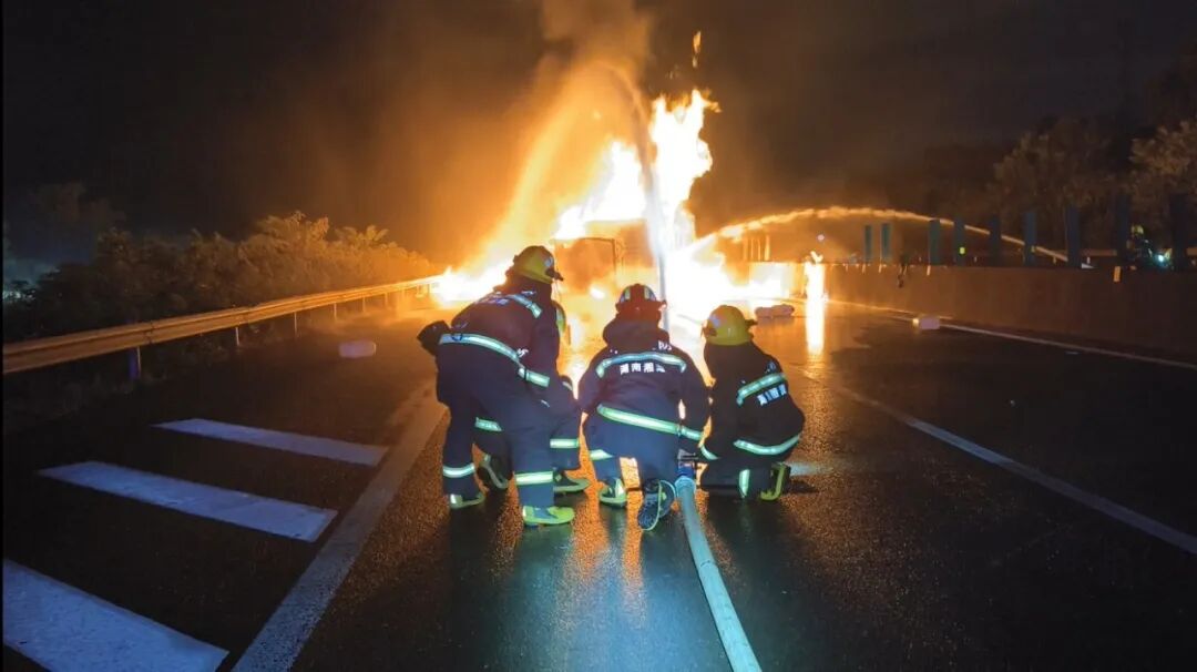 货车突发火情致沿街成“火龙” 火势蔓延数十米