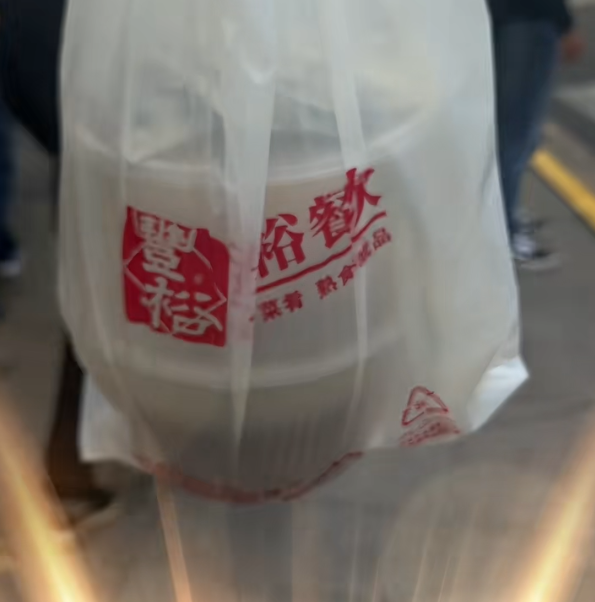 接上刚做完头发的母亲,母子俩直接在车里享用起来。掀开盖子,薄底焦脆的生煎还冒着热气,咬一口肉汁四溢;油豆腐吸满了鲜醇汤汁,粉丝爽滑筋道,暖胃又暖心。