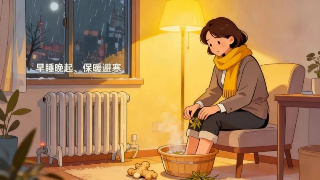 保暖避寒,重点护关键部位:“寒从脚下起,湿从肩颈入”。外出时戴帽子、围围巾,穿高腰裤、厚袜子和防水鞋;睡前用38-40℃温水泡脚10-15分钟,可加3-5片生姜或一小把艾叶,增强驱寒祛湿效果。