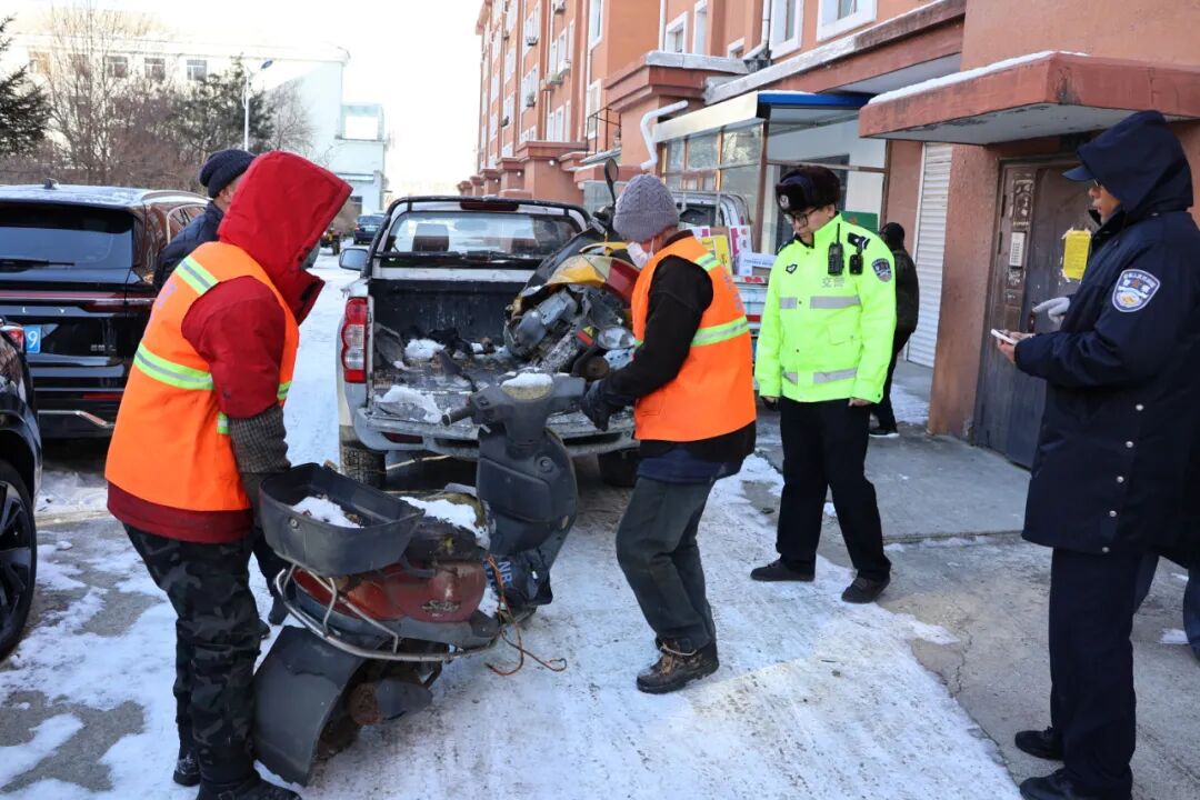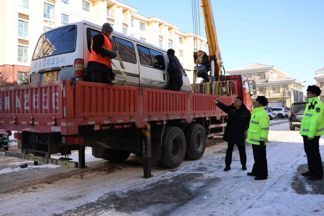 为有效改善道路交通状况,提升居民生活环境质量,规范道路、社区及公共场所的停车秩序,近期,珲春市公安局交通管理大队携手珲春边境经济合作区城管监察大队、近海街道,在辖区内共同开展“僵尸车”专项清理行动,重点整治社区周边环境问题,为居民打造整洁有序的生活空间。