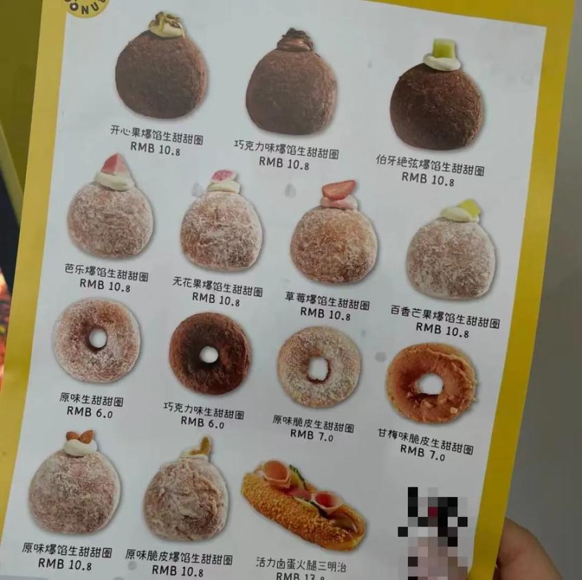 产品与定价方面,甜甜圈门店现有14个SKU,其中13款为甜甜圈,1款为三明治。甜甜圈涵盖爆馅生甜甜圈、生甜甜圈、脆生甜甜圈、脆皮爆馅生甜甜圈等品类,价格在6至10.8元之间。