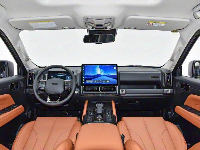 内饰采用黑棕双色拼接设计,整体布局与普通版哈弗H9基本一致,配备10.25英寸液晶仪表盘、14.6英寸中控显示屏、前排座椅加热/通风功能、L2级智能驾驶辅助系统及前视行车记录仪等配置。