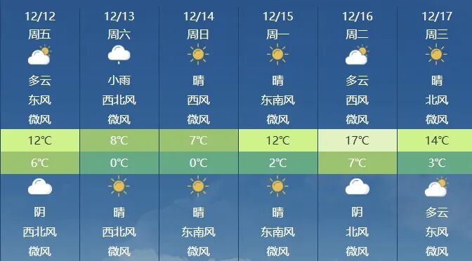 气温从今日起明显下滑,12日至14日48小时内最低气温降幅达8~9℃,15日早晨最低气温将降至-3℃左右。近期气温波动较大,大家一定要注意做好保暖,照顾好自己的身体!