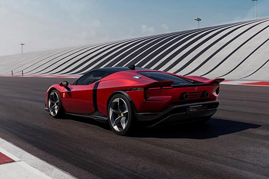 新车的设计灵感部分源自20世纪70年代法拉利Sports Prototype赛车,同时也保留了法拉利SF90上的经典设计细节,比如双层前铲、后翼子板通风口等。车身侧面配备了纵横分布的黑色装饰条,轮毂、外后视镜以及车顶等部位均采用了黑色涂装,营造出强烈的运动氛围。尾部的分段式双尾翼设计则借鉴了法拉利512 S、512 M等经典车型的元素,极具辨识度。
