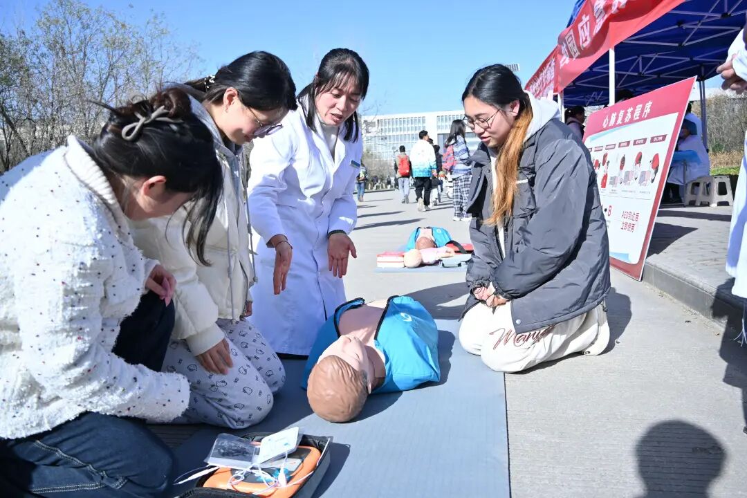 12月9日中午,西安石油大学鄠邑校区下课铃刚响,校医院医护人员就在急救模拟前招呼:“来体验急救吧!学会黄金4分钟救援,你就是‘急救侠’!”学生们纷纷围拢参与体验。