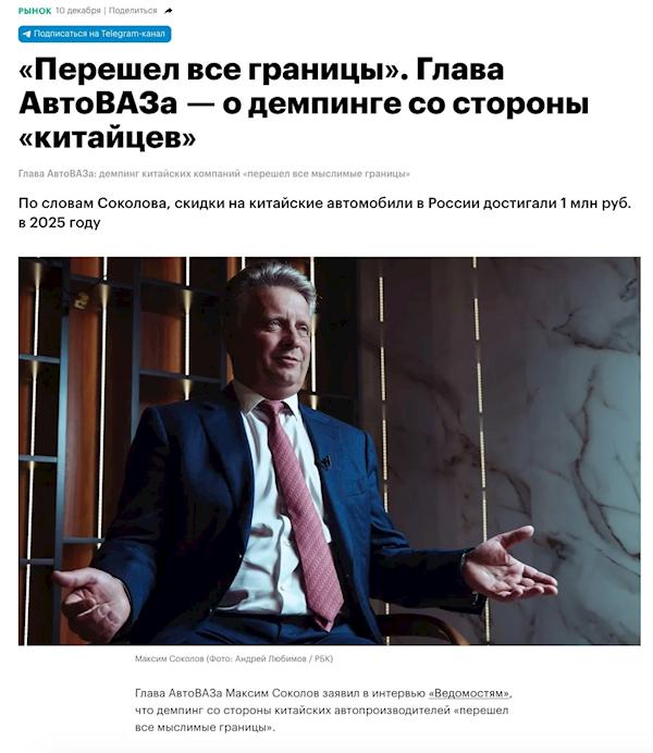 值得注意的是,这并非索科洛夫首次针对中国车企发表相关言论。早在今年4月,他就曾对与拉达Iskra售价相当的中国经济型轿车大量进入俄罗斯市场表达过担忧,认为“这是前所未有的倾销行为,应当对这种异常的倾销情况展开调查”。
