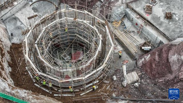 △ 12月10日,工人在赫章县猪拱塘铅锌矿区施工(无人机拍摄照片)。新华社记者陶亮摄