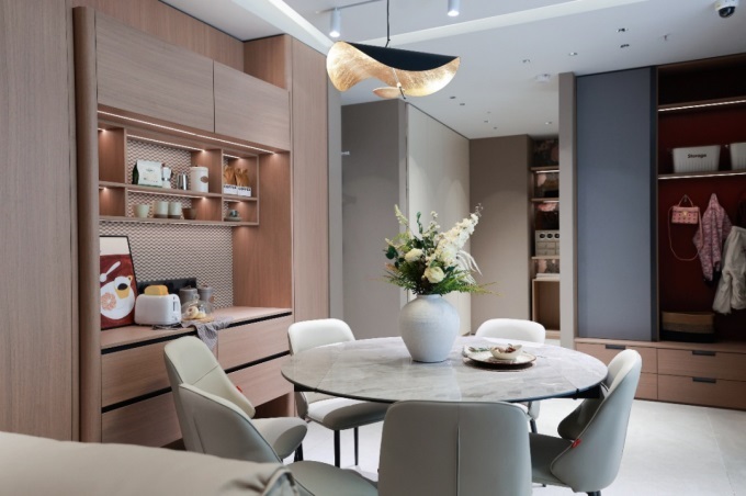 “逛商场如同逛自家”,成为这家新店最鲜明的特色标签。所谓“家场景”体验,即把厨房、客厅、卧室、阳台等日常空间复刻至商场,通过主题样板间让家电家居商品“鲜活”呈现。在厨房场景区,消费者可亲眼见证厨房空调如何破解烹饪闷热难题;卧室样板间里,养生按摩设备的舒适触感触手可及;就连阳台的洗护组合,也充分考量了不同家庭成员的需求。这种“所见即所得”的沉浸式体验,不仅为装修人群理清选购思路,更成为不少人寻觅生活灵感的理想去处。
