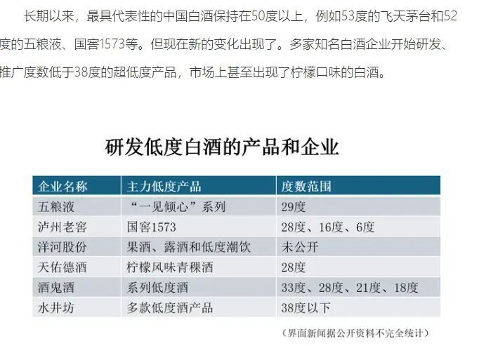 有的降低酒精度,推出易入口产品;有的推出果味白酒,贴合年轻人口味;还有的跨界开发鸡尾酒、预调酒,尝试融入年轻消费场景。