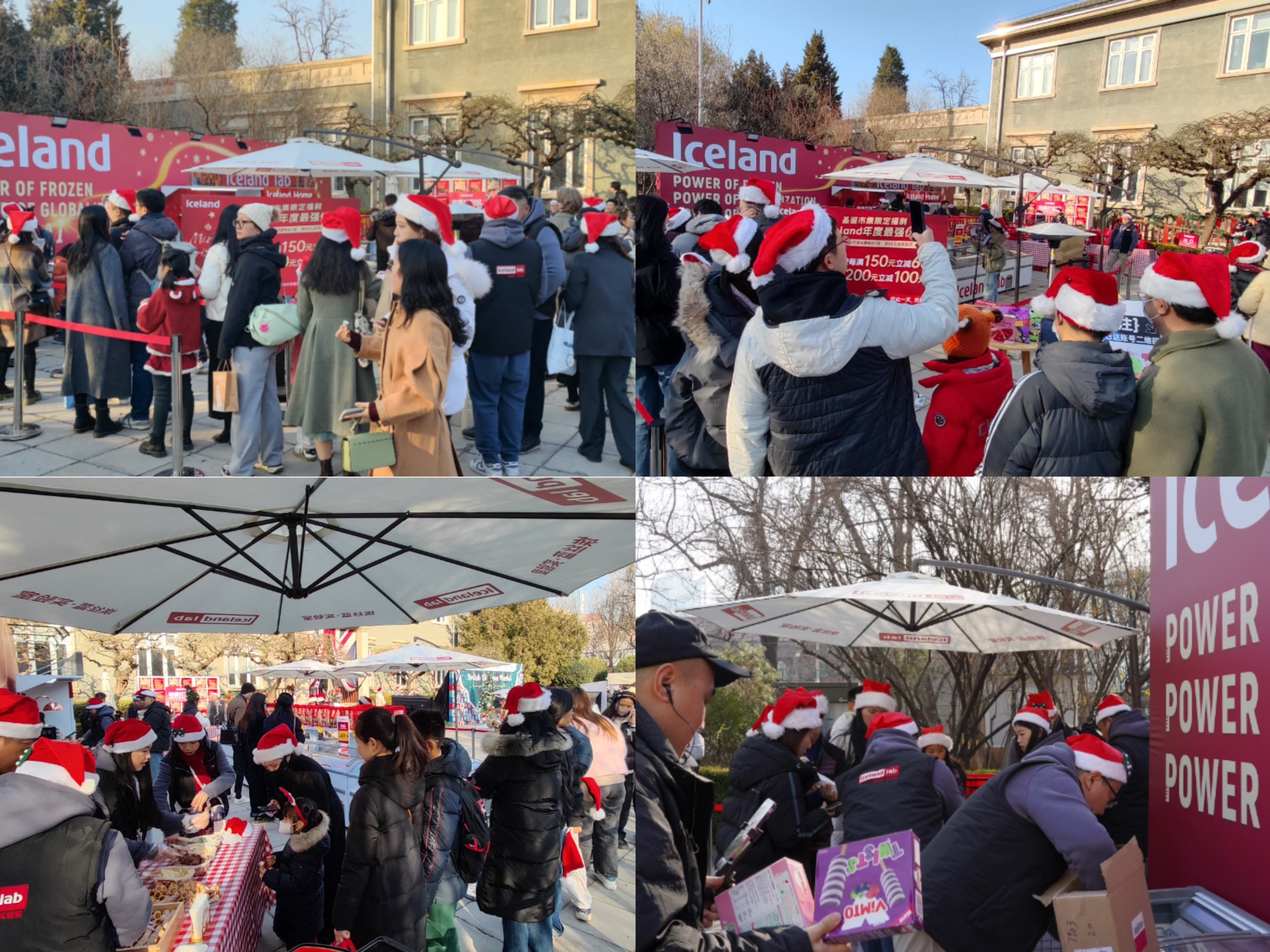 大使官邸市集上,Iceland的冰淇淋最令人意外。寒冬里,顾客排队买冰淇淋的热情不减,甚至争议较大的薄荷味冰淇淋都卖断货,不少顾客称赞“薄荷味很正”。线下冰淇淋的冰爽与节日热络形成强烈反差,制造了“意外惊喜”;而北方家中开暖气刷直播的消费者,好奇心被激发,Iceland线上半天就售出5000多单冰淇淋。