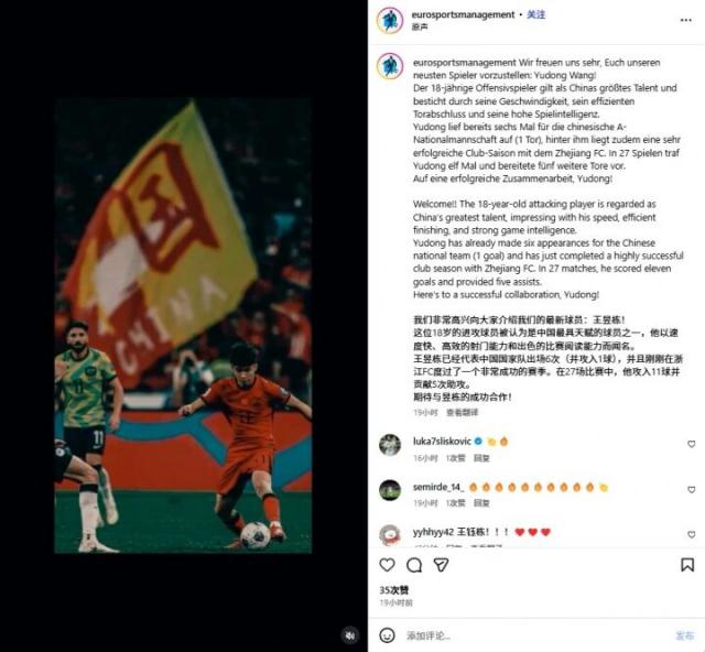值得注意的是,该经纪公司曾代理过莱万、沙德、拜尔等知名球星,其丰富的资源和经验让球迷对王钰栋的留洋之路充满期待。