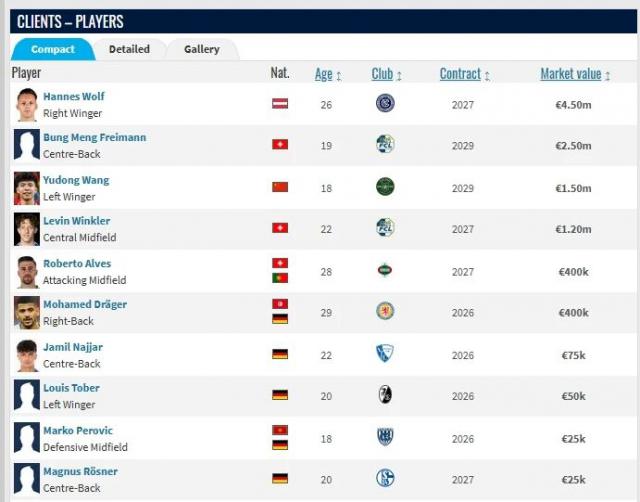 根据德转信息,该公司目前旗下还有不少实力球员。