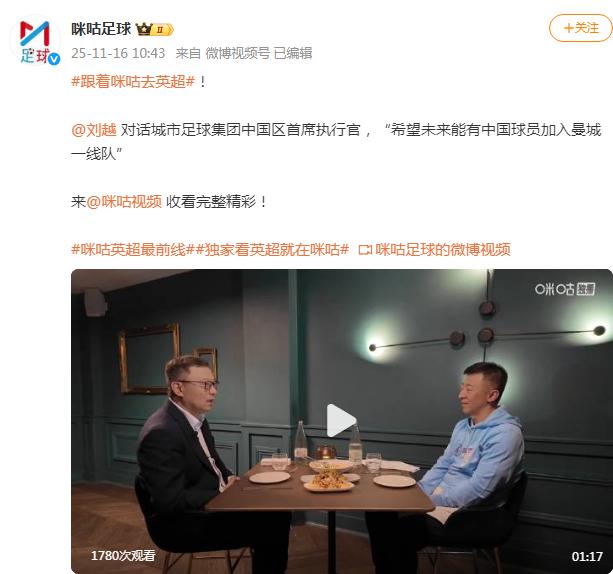 在王钰栋签约经纪公司后,城市足球集团中国区CEO汤锡钢在接受刘越采访时表示,希望未来能有中国球员加入曼城一线队。