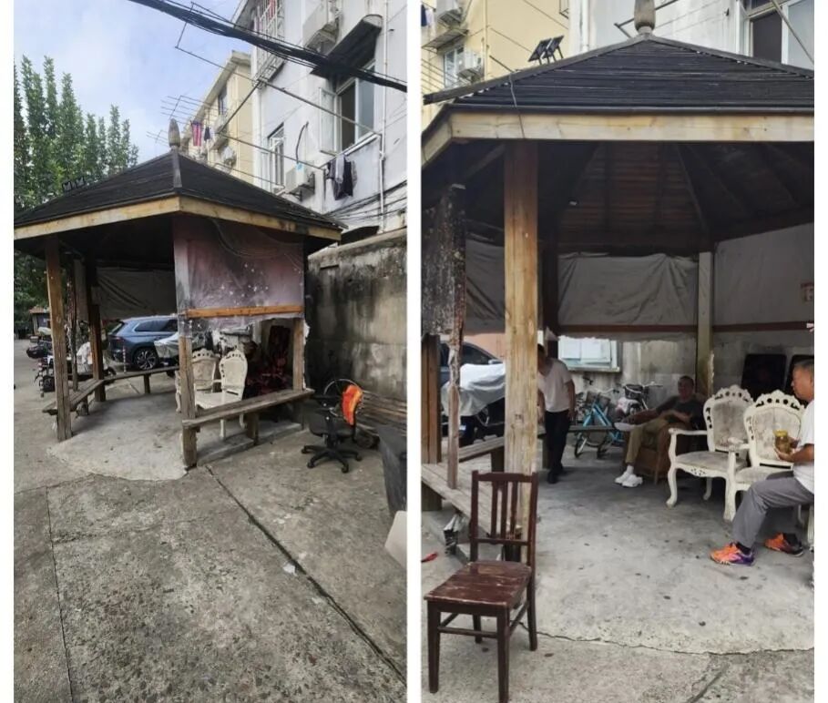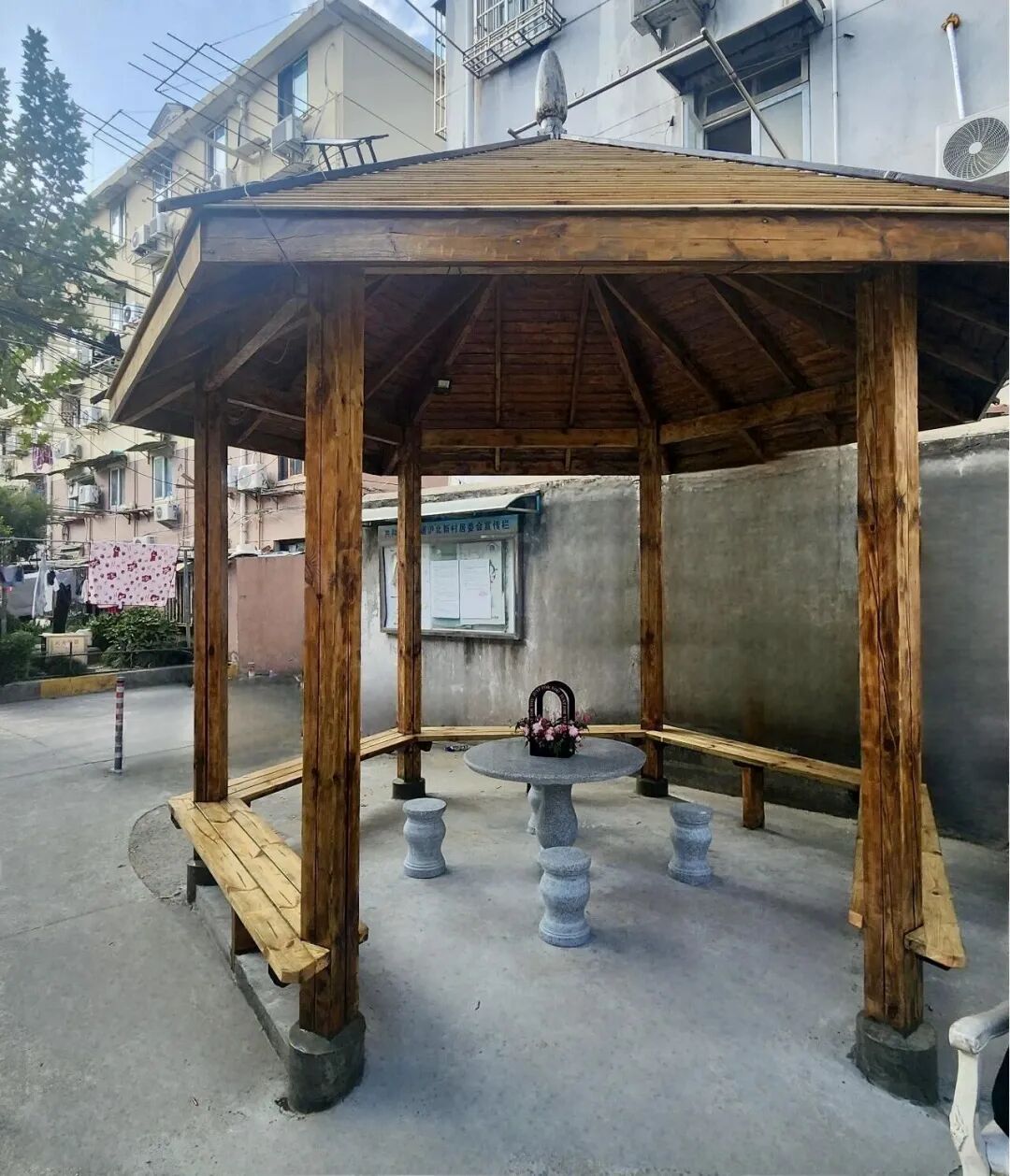 如今,修缮后的凉亭焕然一新,崭新木质屋顶坚固耐用,梁柱涂刷后色泽鲜亮、防水防潮,整洁美观的凉亭恢复功能又添安全保障,成了社区老人喜爱的休闲地。
