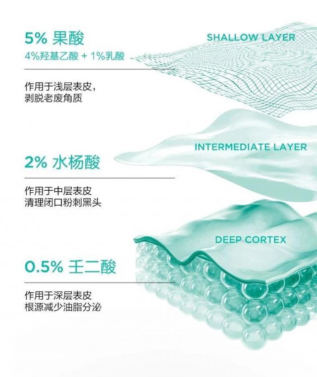 4重复合酸能多维度针对闭口、痘印、老废角质堆积,功效全面!对于下巴反复长闭口、偶尔长囊肿痘的情况,它能加速恢复和成熟;针对鼻翼老废角质堆积,效果也很迅速。它采用“秒剥脱技术”,见效快,5分钟就能让皮肤有磨皮抛光感,不像清洁面膜需要二三十分钟。套装配有工具,洁面后薄涂全脸,等待几分钟洗掉即可!