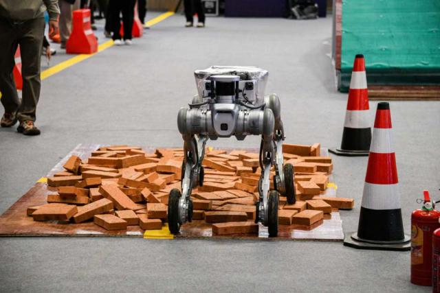 “手”决定操作精度上限,“腿”则定义机器人活动空间边界。在模拟灾难救援的复杂赛道上,稳定性比速度更重要。上海仙工智能的四足机器人通过多传感器融合与实时姿态调整,在碎石、台阶上稳健前行,展现恶劣环境中的移动能力。