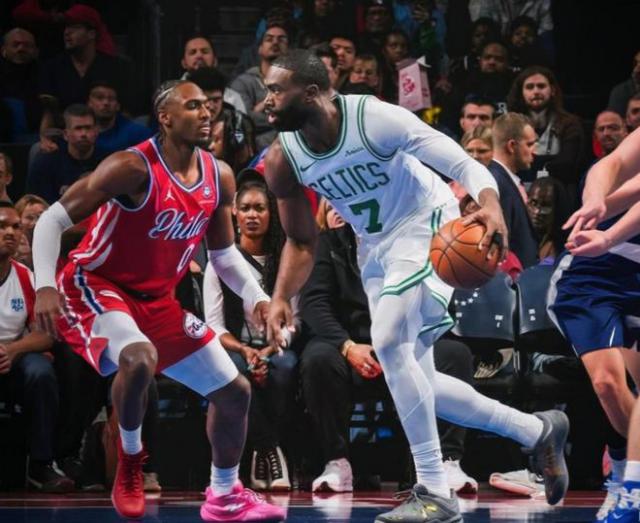 但本赛季布朗不仅用数据证明被低估,更展现出领袖气质。进攻端化身中距离大师,场均5.8次中投命中率从40%升至53.1%(出手超50次球员中效率最高),完美诠释攻防一体。赛季前他就承诺:“塔图姆不在,我扛队。”