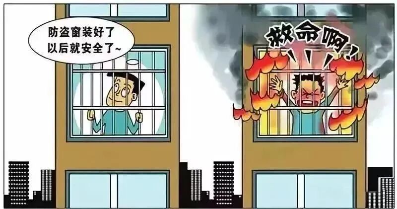 防范建议:较低楼层可安装可开启式防盗窗,意外发生时能迅速打开逃生。