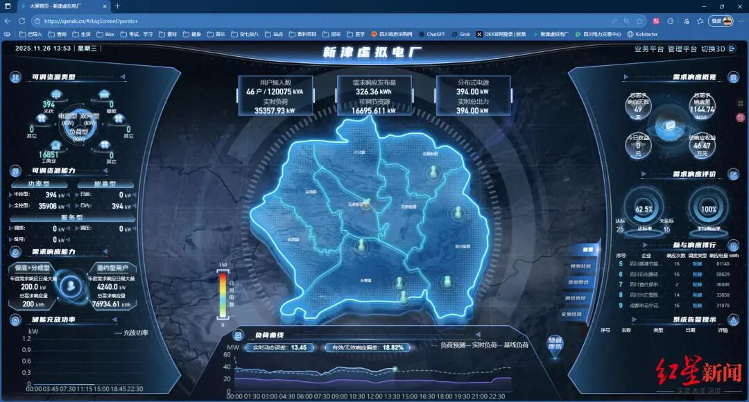 12月12日消息,由新津区经信局牵头、成都新津数字科技产业发展集团投资打造的“虚拟电厂”已正式建成试运行。该系统被称为“智慧能源大脑”,正逐步改变区域用能格局。