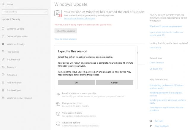 未加入ESU计划的Windows 10电脑无法暂停更新