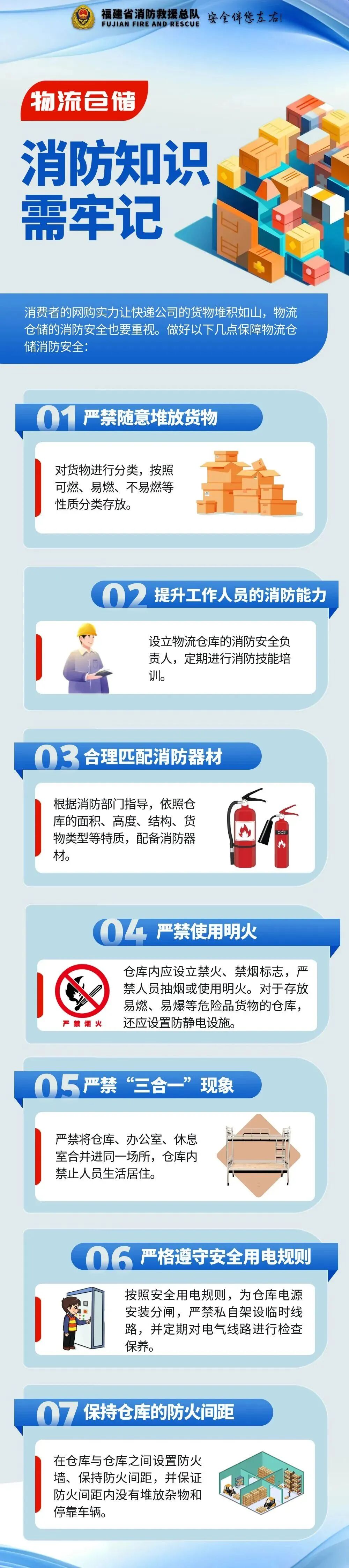 物流行业从业人员需高度重视消防安全,时刻保持警惕。以下为物流仓储消防安全提示,请务必注意: