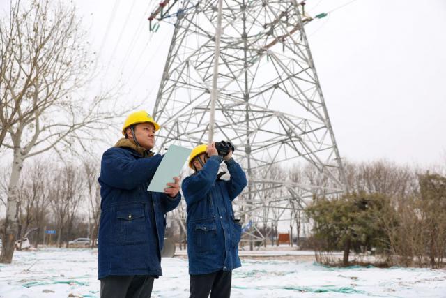 国网北京亦庄供电公司员工雪中巡检,全力保障地区电网平稳运行。国网北京亦庄供电公司供图