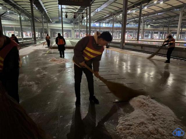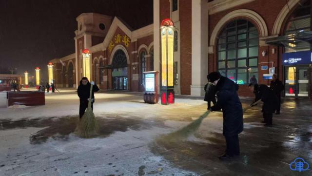天津站积极应对降雪 守护旅客平安出行