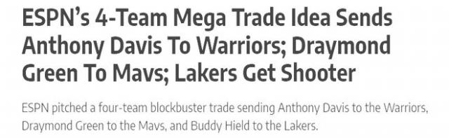 四方重磅交易构想:浓眉转投勇士,格林库明加奔赴独行侠,湖人喜迎新神射手
