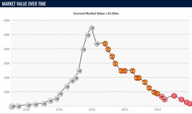 2019年范德贝克加入曼联后,他的比赛风格与球队存在较大适配问题,5500万欧元的转会费一路下跌至3900万欧元。频繁的外租和伤缺让他的自信心受到打击,2024年他与曼联解约,转而加盟法兰克福开启新的职业生涯。