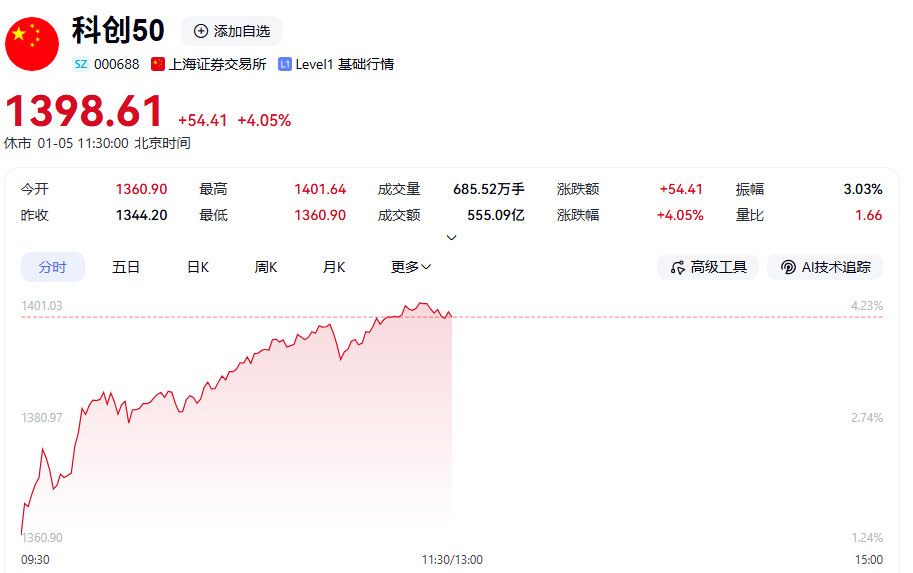 2026年首个交易日(1月5日)上午,A股市场表现强劲,上证指数成功向上突破4000点整数关口。