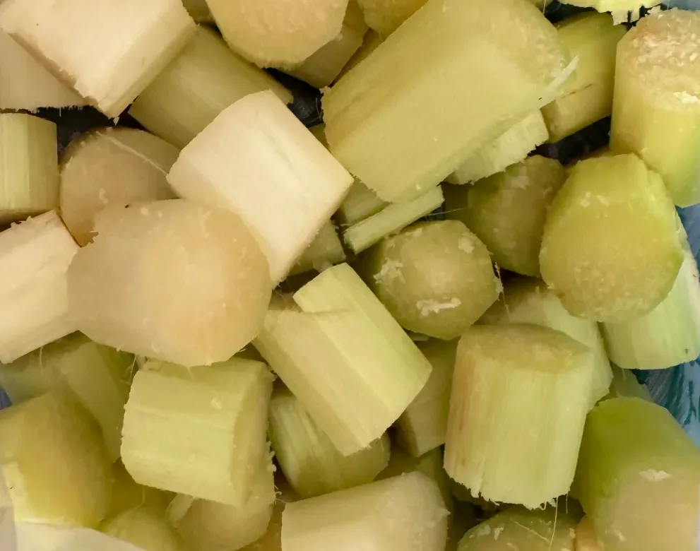 买甘蔗时,要仔细看外观,别买表皮破损、颜色异常的,尤其要注意甘蔗瓤。正常甘蔗的瓤白白嫩嫩,汁水清甜;霉变甘蔗的瓤可能有红色、棕色或灰黑色斑点。