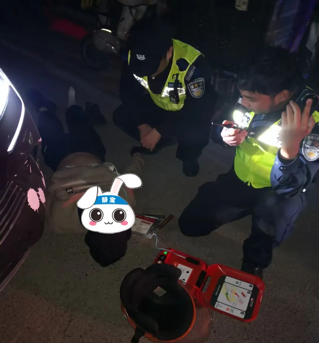 黄警官接过AED,迅速贴好电极片,按照语音提示进行电击除颤。一系列操作果断利落,几分钟后,小哥逐渐恢复了微弱的呼吸和意识。