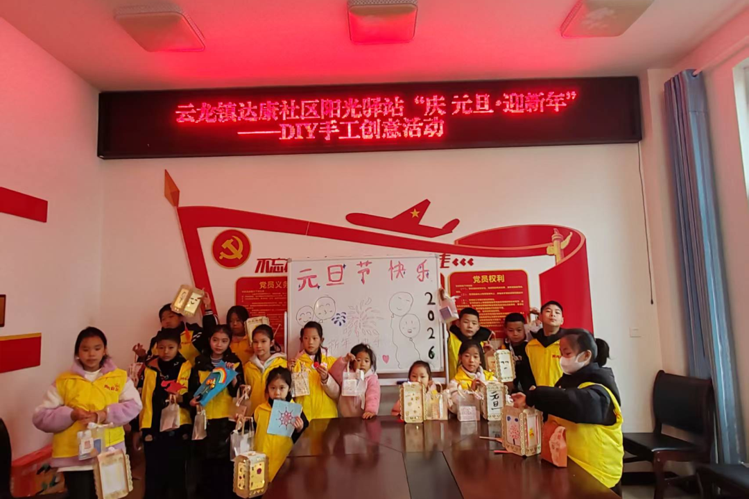 云龙镇达康社区的阳光驿站里,一场“庆元旦·迎新年”DIY手工创意活动热闹展开。孩子们化身小小创意家,围坐在桌前专注地摆弄着卡纸、彩灯和贴纸,灵巧的双手将简单的材料变成了一个个精致可爱的小灯笼。他们举着自己的作品开心合影,稚嫩的脸庞上洋溢着对新年的期待,活动不仅锻炼了动手能力与想象力,更让孩子们在欢声笑语中体会到党和政府的温暖关怀。