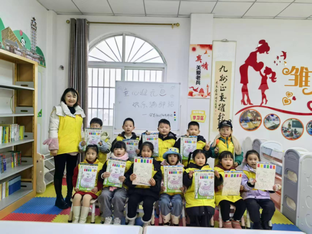 潮河镇瓦子社区阳光驿站的“童迎元旦 趣享时光”主题活动中,爱心妈妈们与孩子们亲切交流,耐心讲解节日习俗。实践环节里,孩子们俯身专注于创意绘画和手工制作,用色彩斑斓的材料拼凑出充满童趣的作品,一张张笑脸写满成就感,整个驿站都被童真与欢乐包围。