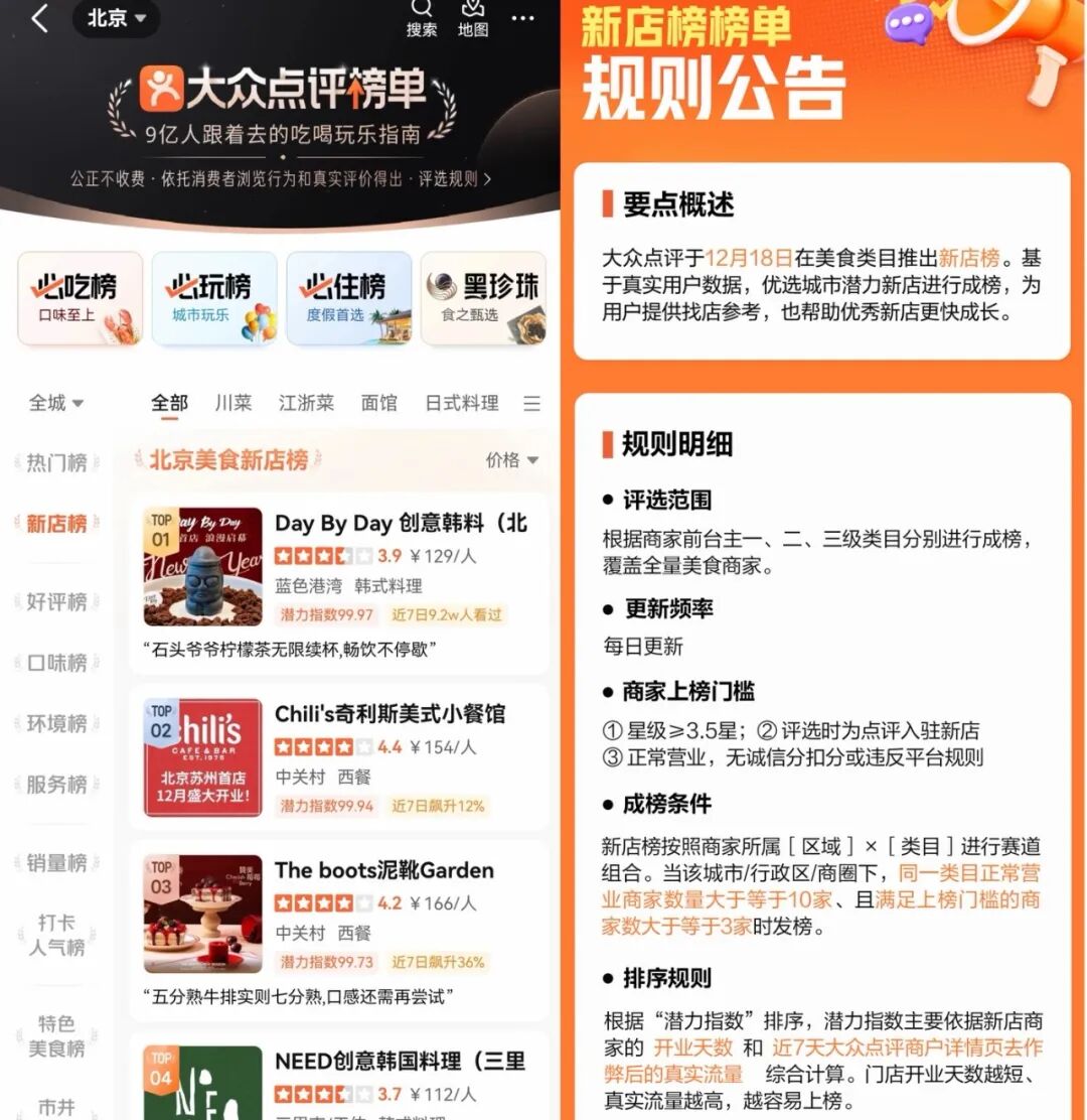 真相:否。星级评定是基于数亿条评价的AI综合计算结果,考量真实(未干预评价权重高)、时间(近期评价权重高)、质量(内容详实、有参考价值)三个维度,反映商家在同类商户中的相对水平。12月18日平台还推出美食类目新店榜,扶持新店商家。