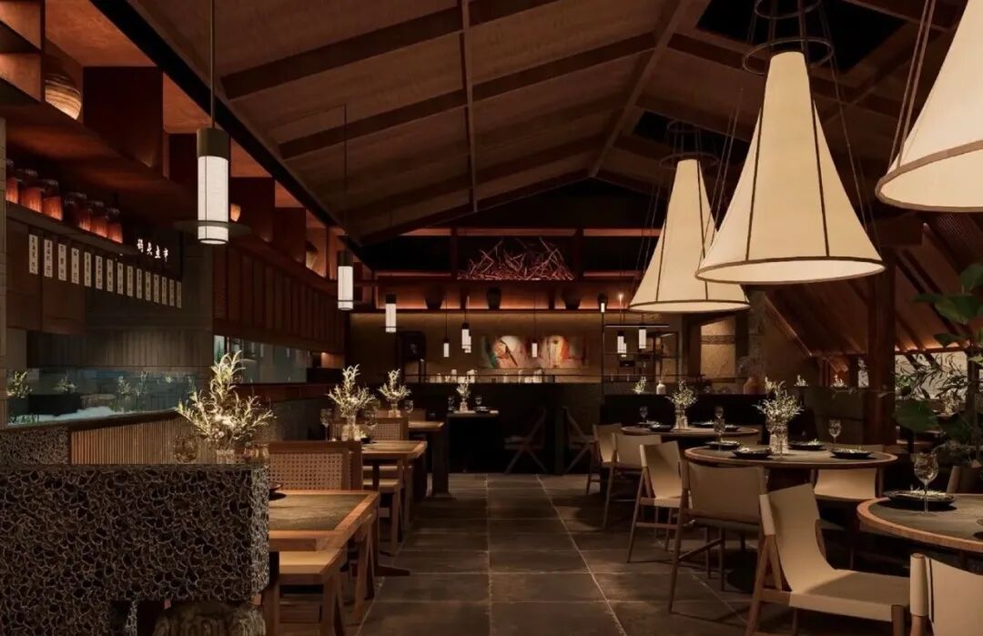 比如胡恰·景德江西菜将景德镇的“瓷窑”元素植入明厨亮档,利用质朴青砖搭配手工陶瓷,让客人仿佛置身赣北的青砖黛瓦中;云贵菜品牌贵Guui把苗族银饰、蜡染布料等民族元素搬进门店,让餐厅成为一张地域文化名片;主打宁波海鲜的甬江烟火,则提取渔船、礁石、滩涂等海岸标识,以原木、粗石、竹编与植物交织布局,还原了闲适优雅的海边气息。