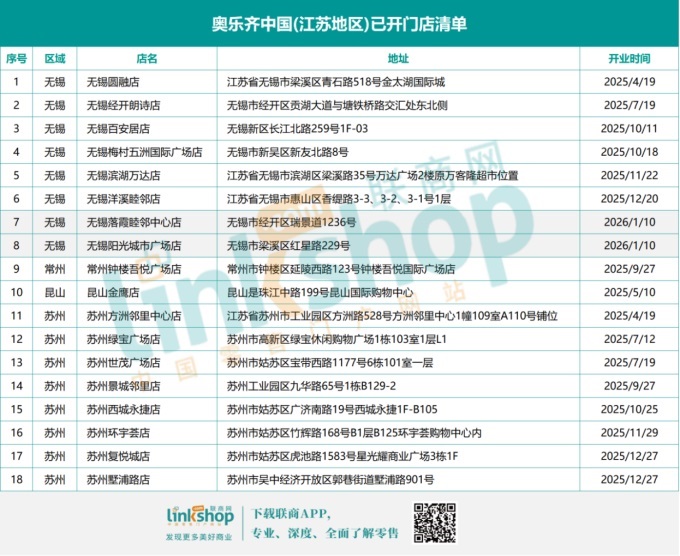 到那时,奥乐齐在无锡的门店数量将增加到8家,在江苏省的门店总数则会达到18家。