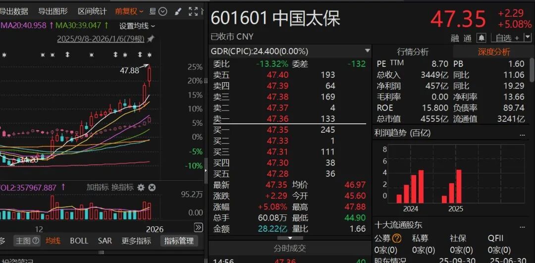 沪指4000点在A股投资者心中地位重要。2024年“924”行情后,多空双方多次争夺该点位。2026年开年,保险板块表现突出,1月5日、6日连续大涨,中国平安、新华保险、中国太保均创历史新高。