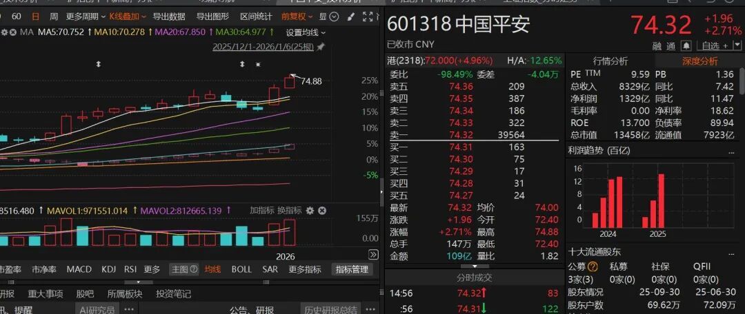2025年保险板块虽不及科技股亮眼,但涨幅可观,新华保险上涨46.03%,中国平安上涨35.87%。