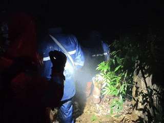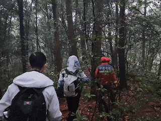 3时48分,消防员携带救援绳索、强光照明设备以及水、食物等物资抵达现场。他们依据被困人员的手机定位,迅速进山展开搜救工作。