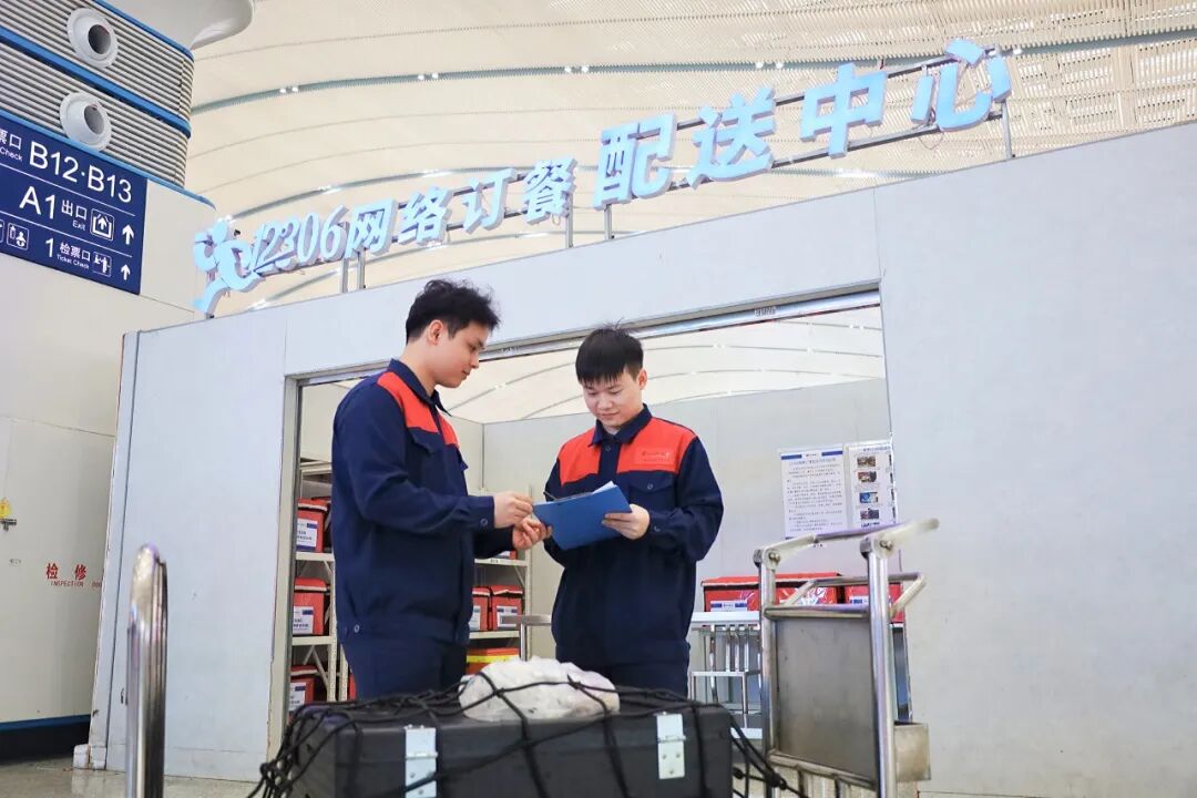 这些餐食在热链厨房烹制完成后,会立即转入专业设备进行全程保温配送,确保送达旅客手中时,餐品中心温度不低于60摄氏度
