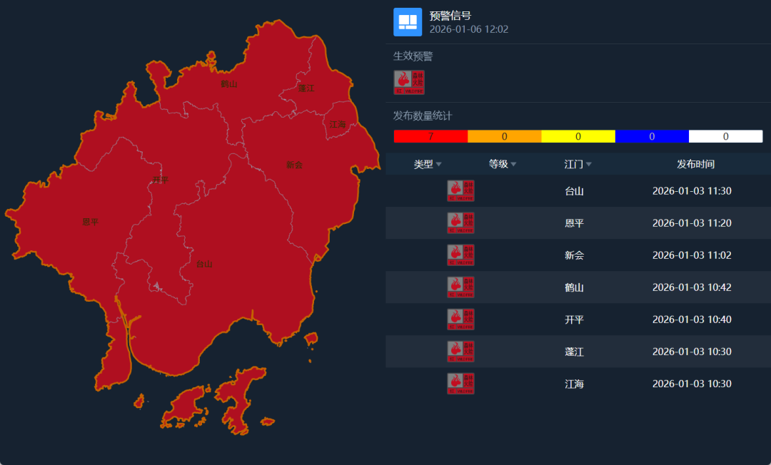 全市森林火险红色预警信号