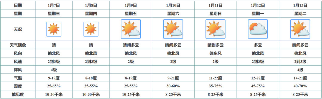 预计7日至8日,受冷空气补充影响,气温小幅下降,早晚时段较为寒冷;9日至13日,云量有所增加,气温将缓慢回升。未来一周,江门的昼夜温差依旧较大,早晚出门时还是要留意做好保暖措施哦。