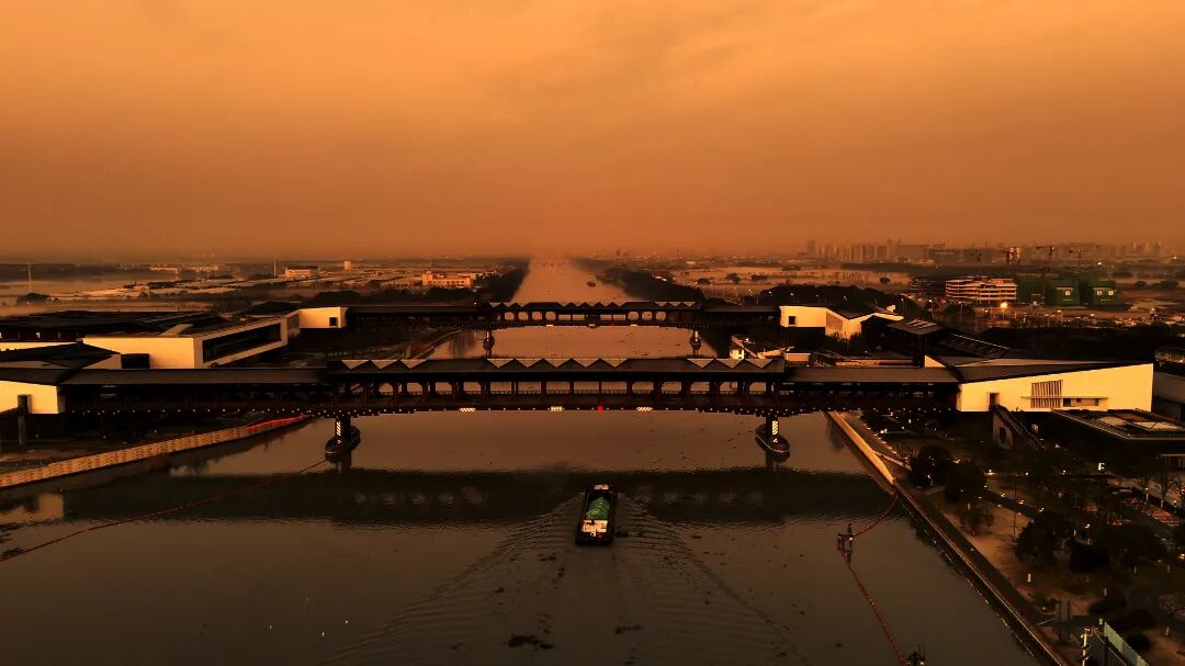 清晨的微光刚刚划破天际,绚烂的霞光便晕染开来。当第一缕阳光掠过平静的湖面,洒向那片青瓦与白墙相互交织的建筑群时,一座横跨两省一市的标志性建筑——方厅水院,在长三角生态绿色一体化发展示范区水网纵横、满眼翠绿的画卷里,完整地展现在人们眼前。