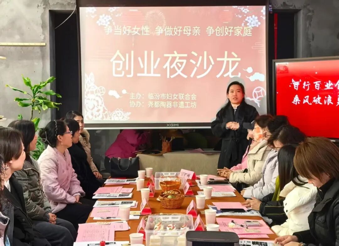 2025年12月31日傍晚,尧都区靳家庄兴村的尧都陶器制作技艺非遗工坊内暖意融融,陶土的清香与热烈的交谈声相互交织。临汾市妇联主办的“争当好女性、争做好母亲、争创好家庭”创业夜沙龙在此温馨开启,一群心怀梦想的女性创业者齐聚千年陶艺的浸润之地,共同探讨非遗传承与创新之路,谋划创业发展的未来方向。